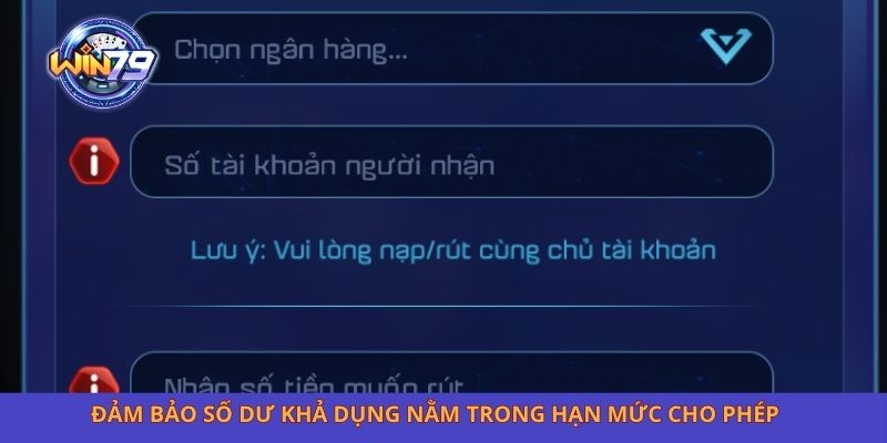 Đảm bảo số dư khả dụng nằm trong hạn mức cho phép
